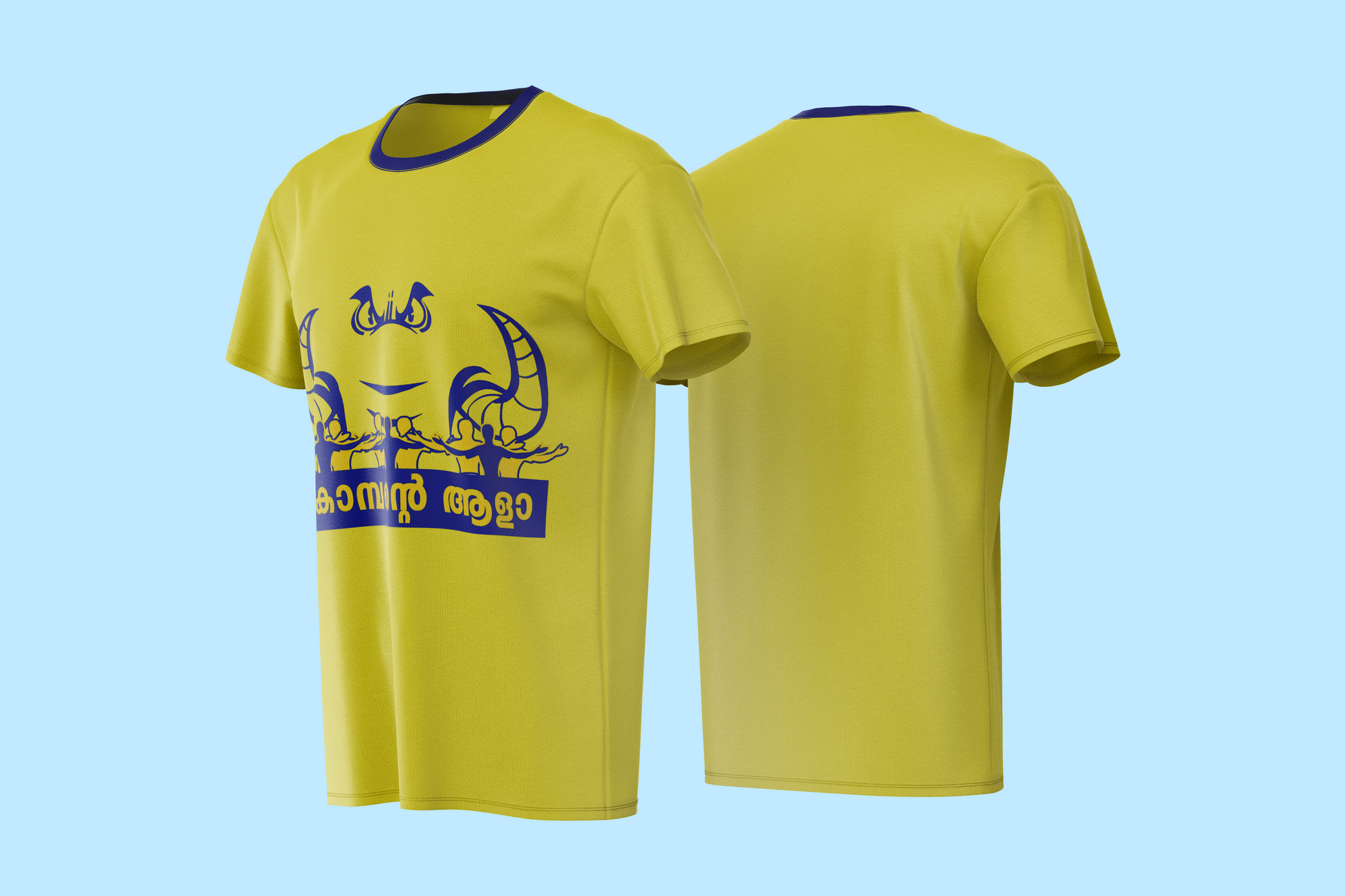 Show your unwavering support for Kerala's favorite soccer team with our unique fan tee. Featuring a one-of-a-kind design, this t-shirt is perfect for die-hard fans like you. Wear it with pride and showcase your love for your favorite team. Join the fan club and show your fandom with this must-have tee.